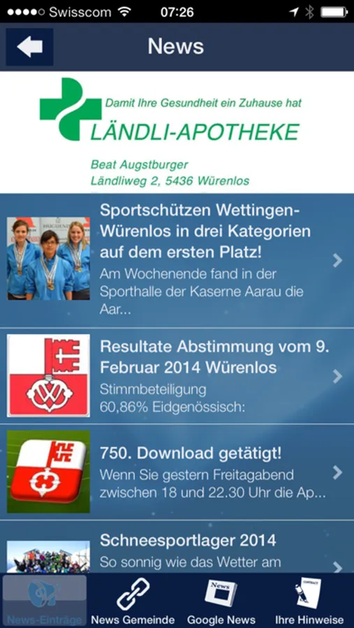 Würenlos Info: Das Informations-App für die Einwohner von Würenlos, betreut von J.Berger Engineering GmbH, Petra und Jürgen Berger-Russi, Würenlos.
