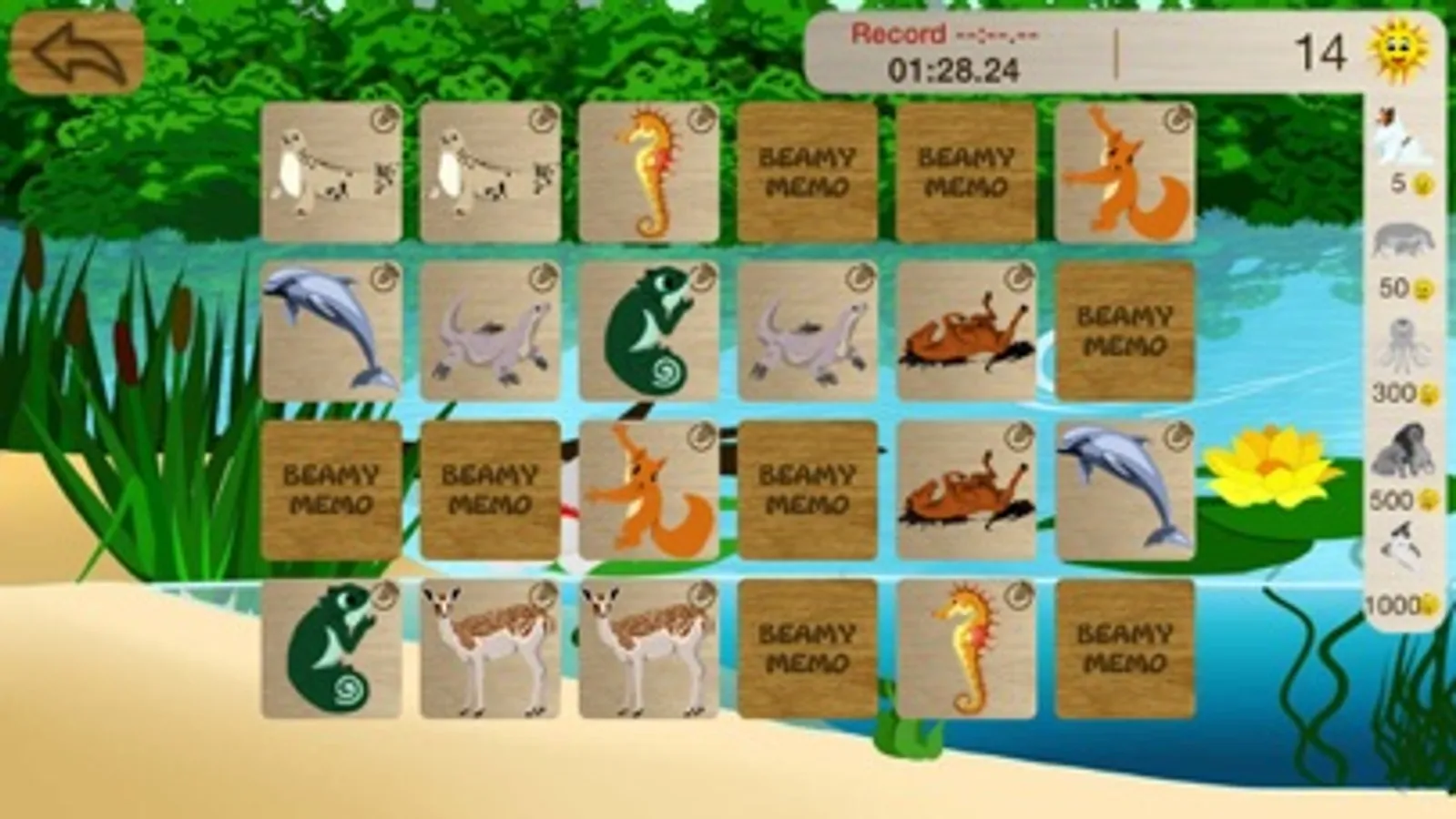 The free version Beamy Memory contains 5 animals and 3 levels of difficulty, but your baby by playing can unlock 5 additional animals.