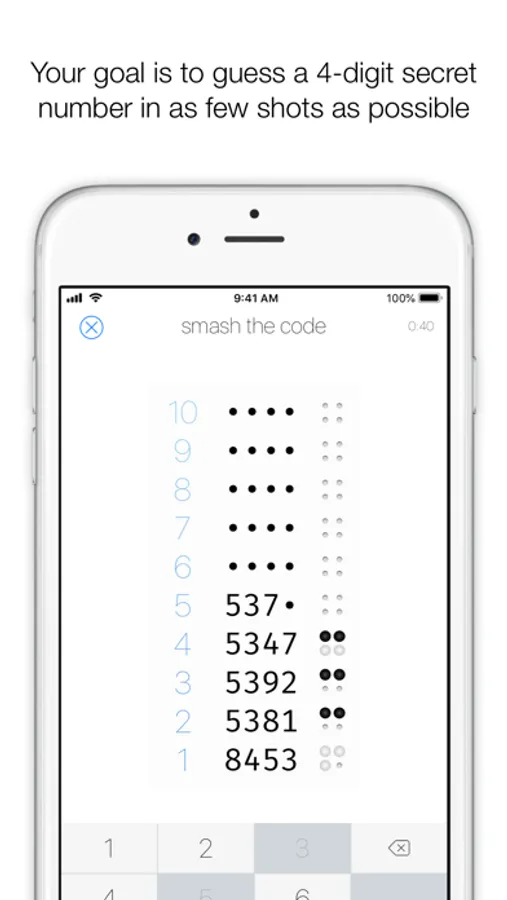 This game has the best features from classic board game and paper-and-pencil Bulls and cows. That means you can play Smash the Code on your own or against a friend sitting next to you.