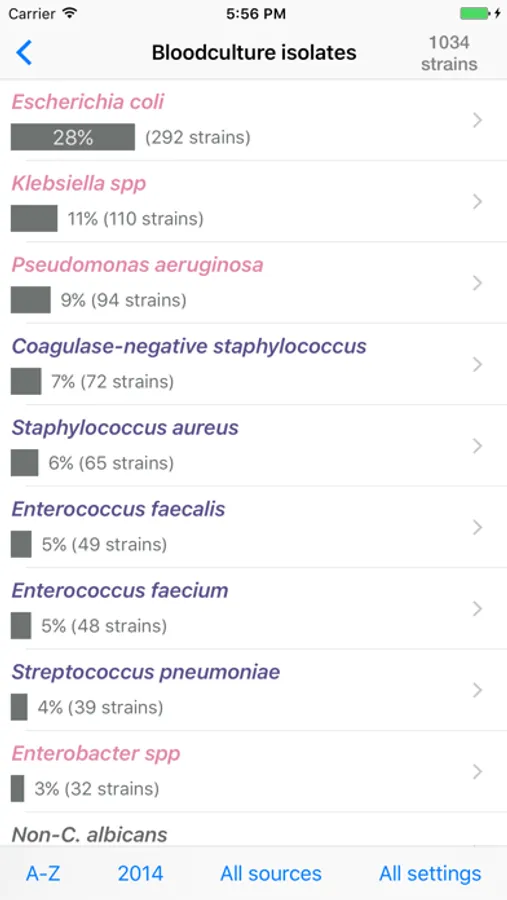 • List isolated microorganisms by its frequency according to the different sources of bacteraemia.