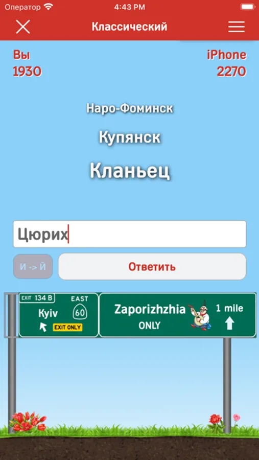 - "Пятиминутка" - режим, в котором Вам предлагается назвать как можно больше городов всего за 5 минут.
