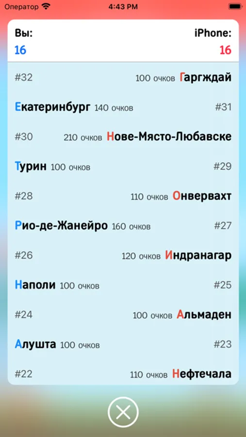 - "Обычная игра" - классический режим, в котором Вам необходимо последовательно называть города, за что Вам будут начисляться очки.