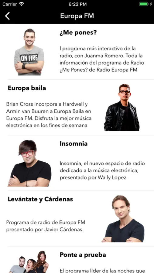 The application that includes spanish radio stations. The application includes online stations classified by categories and the frequencies of this stations in Spain.