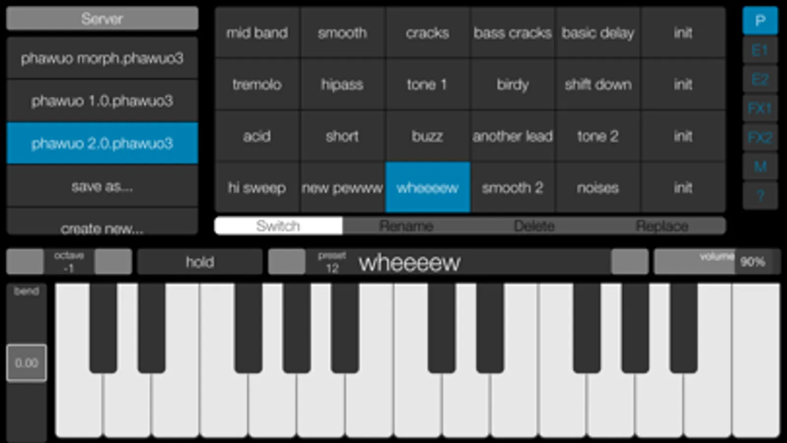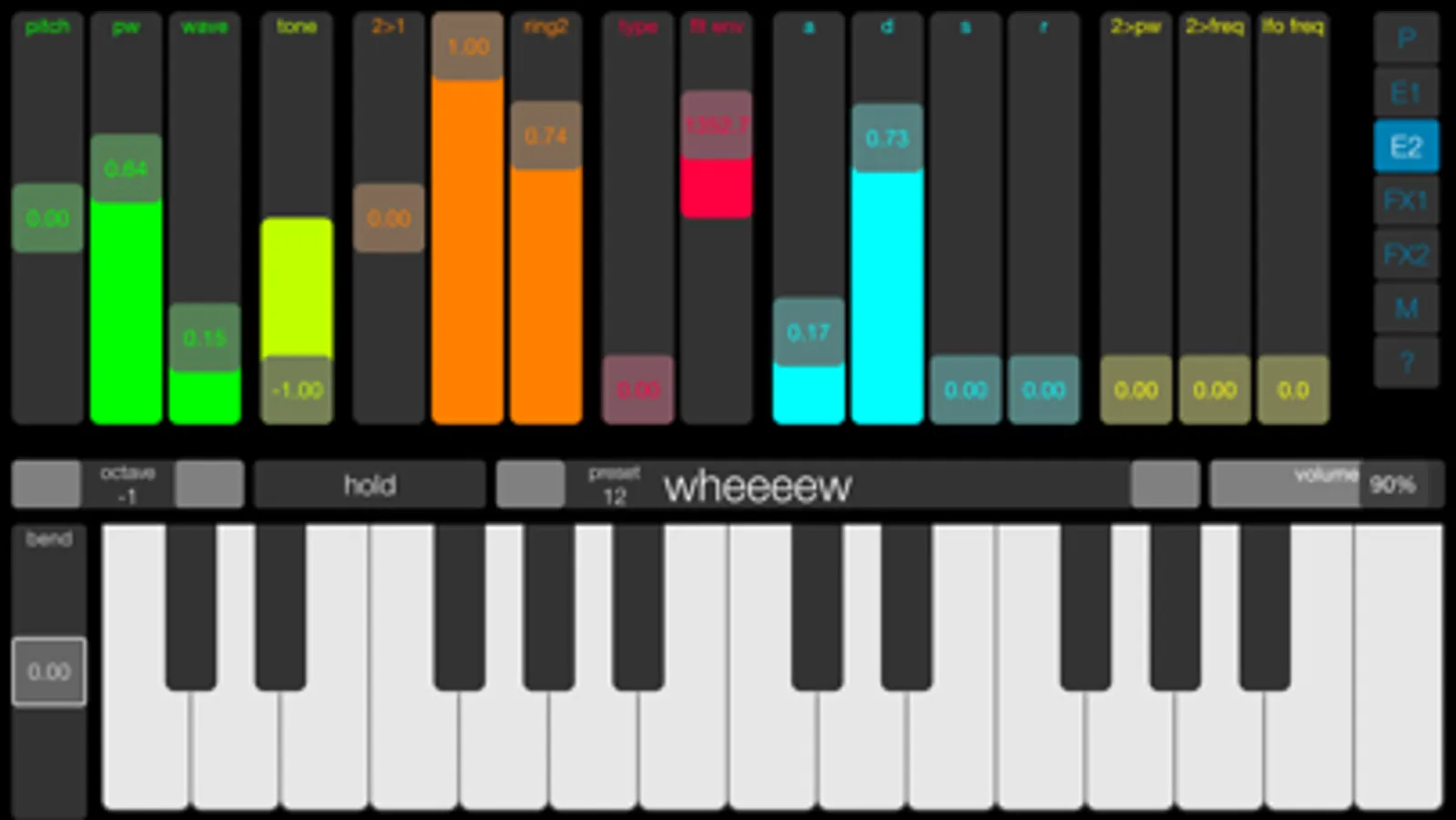Phawuo is an experimental monophonic virtual-analog synth with "dirty" oscillators. Good for bass sound and effects.