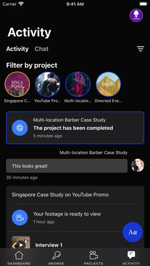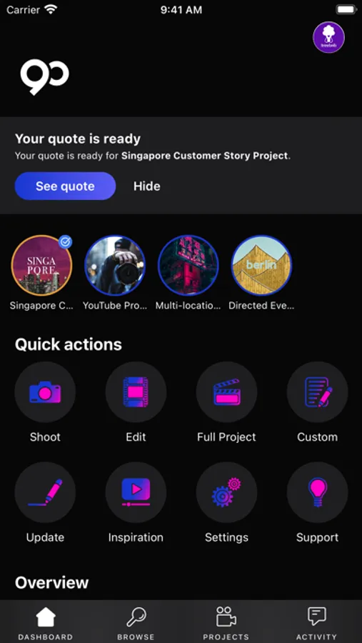 The 90 Seconds mobile app provides always-on connectivity and collaboration with the full 90 Seconds video creation platform. Using the app, you can: