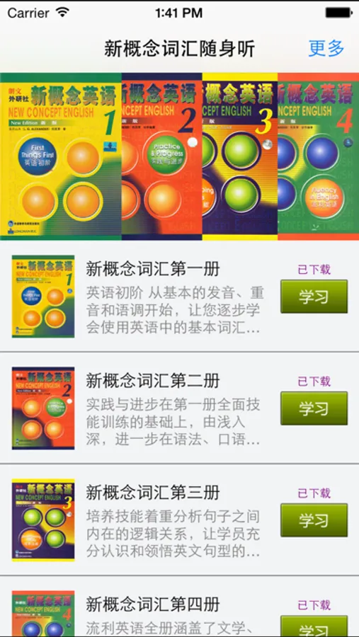 ● 本软件主讲新概念英语中出现的生词,通过学习本软件,可达到能够轻松阅读新概念英语课文的水平。