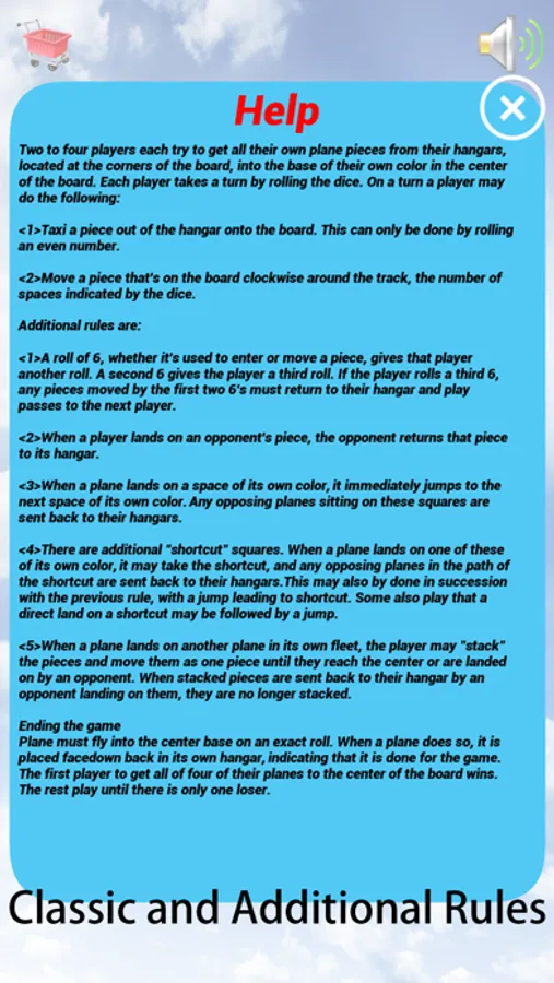 4.There are additional "shortcut" squares. When a plane lands on one of these of its own color, it may take the shortcut, and any opposing planes in the path of the shortcut are sent back to their hangars.This may also by done in succession with the previous rule, with a jump leading to shortcut. Some also play that a direct land on a shortcut may be followed by a jump.