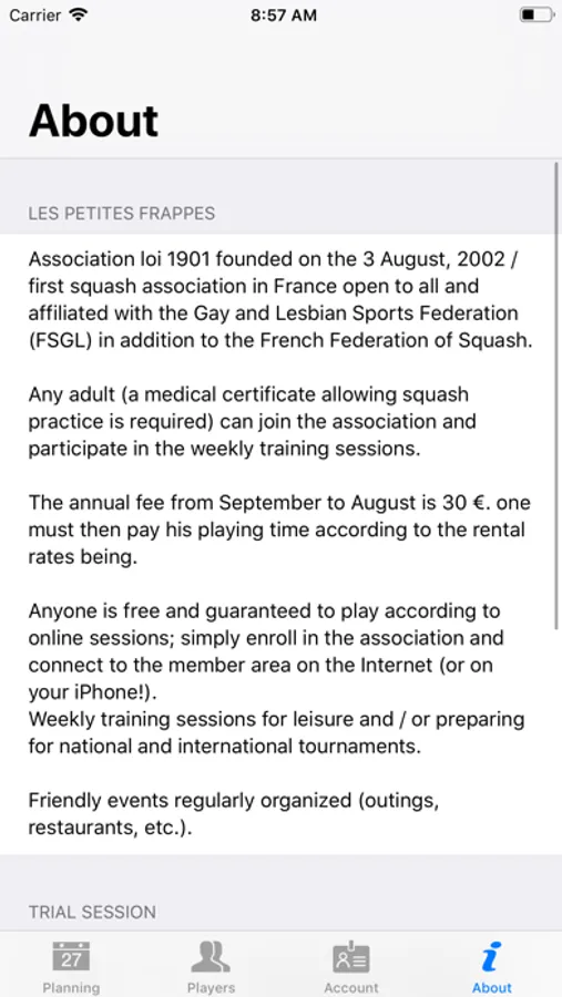 If you're not a member yet of Les Petites Frappes, you can still download this app and see the next sessions we organize. Those are open for people who would like to try out with us :)