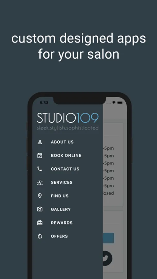 Studio 109 is a demonstration of a custom salon application built by Hairware/Beautyware apps.