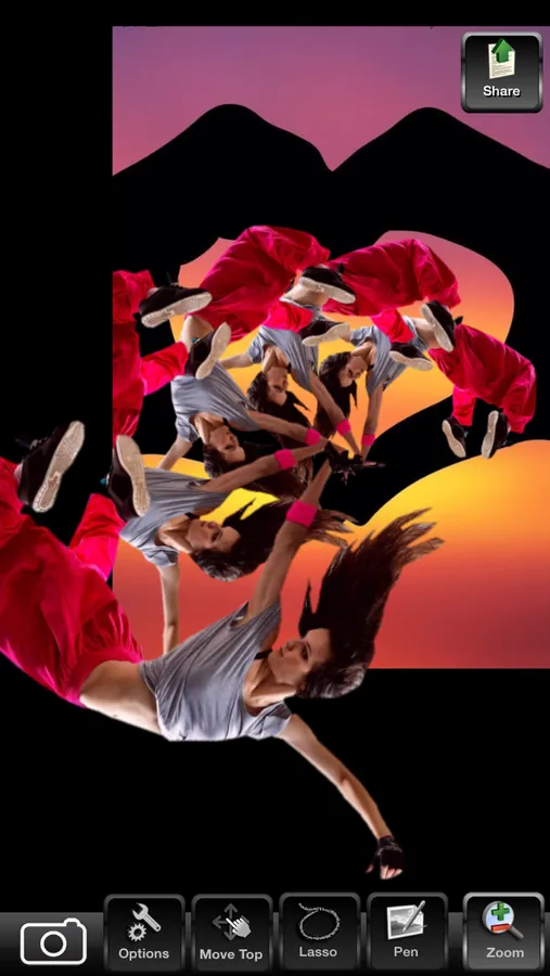 To make a superimpose/juxtaposed image, you need two images to start your composition. The foreground image will be able to cutout/mask, re-size, move and rotate to blend it with the background image. The background image will be “Canvas” onto which you can then draw the top image.