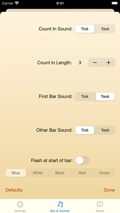 The app will count the bar lengths, using metronome-like sounds to mark the starts of bars and lines. If you need to practice a specific bar, you can easily set the app to start at that bar and even to loop over that bar continuously.