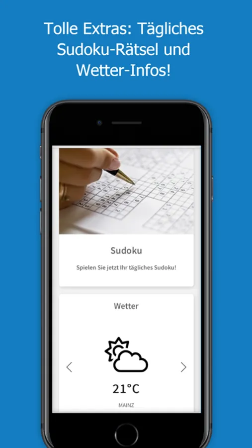 + Unterhaltsame und praktische Extras: Tägliches Sudoku- & Kreuzwort-Rätsel sowie Wetter-Infos aus Ihrer Region.
