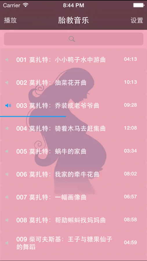 有研究表明孕妈妈在听胎教音乐时母体内的胎儿也会被感染,胎教音乐能够帮助孕妈妈缓解紧张的心情、稳定情绪,能够刺激腹内胎儿的脑部,对宝宝的智力身心有所帮助还能增强宝宝的安全感;在准妈妈们孕期的280天,每天听一听《聪明宝宝胎教音乐合辑》是好的选择之一哦~