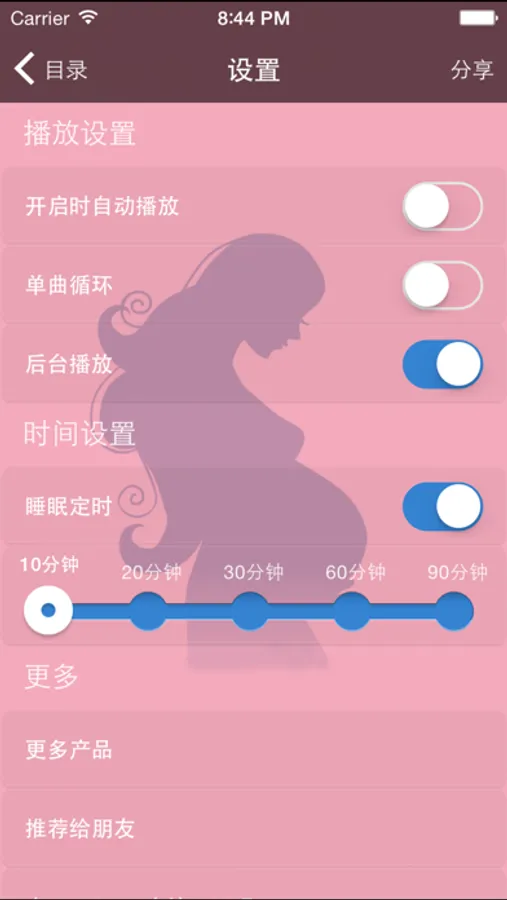 7.睡眠定时功能,可设定播放时间,到设定的时间后应用将自动暂停以免耽误您的休息。