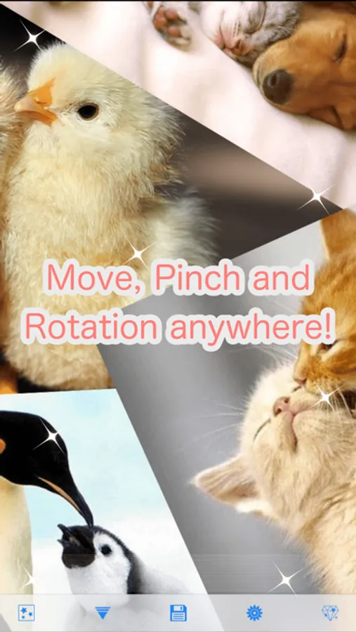 Your favorite photos can be pasted on this app for making a favorite image. They are available to move, zoom, rotate and put on other pictures, also you can do them anytime and anywhere.
