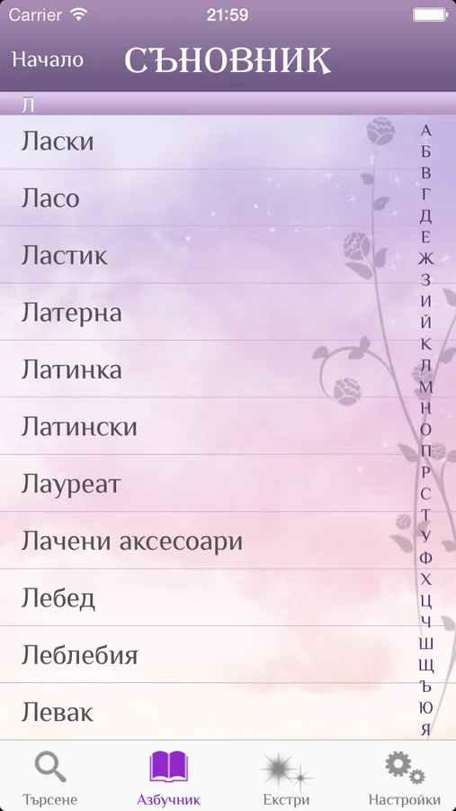 § Възможност за преглеждане на целия списък от сънища, групирани по буква.