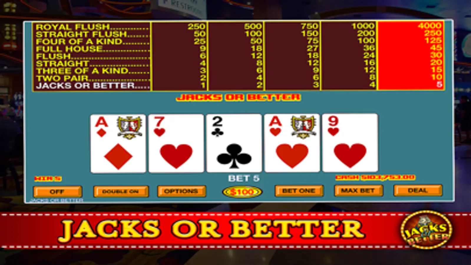 Test your skills and play against the house on your favorite Video Poker game - Jacks Or Better. Enjoy the thrilling experience of playing the ORIGINAL video poker game on your iPhone/iPad.