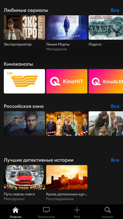 большая коллекция отечественных и зарубежных фильмов на казахском и русском языках (услуга «Видео по запросу» - Video-on-Demand);