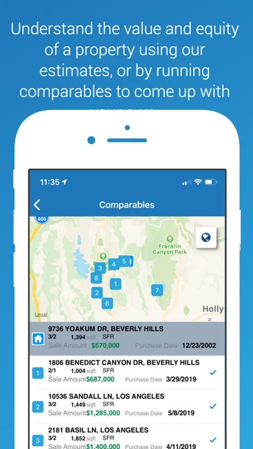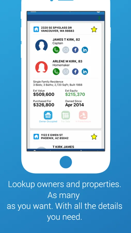 * Lookup a Property (by address, APN, or near you) or Owner (by name, phone, or email) and view comprehensive profiles on them.