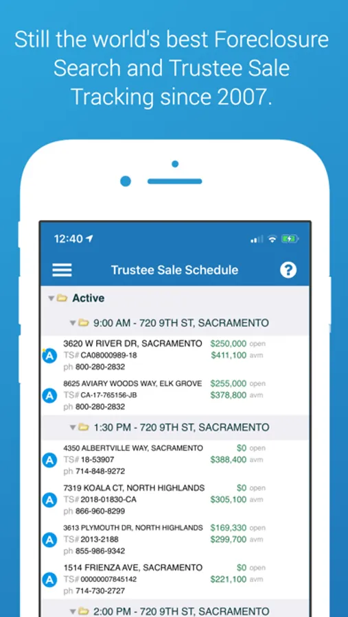 * World's best Foreclosure Search and Trustee Sale Schedule since 2007. We provide more than just foreclosure notices. Our Trustee Sale Tracking delivers daily active tracking of all Trustee Sales, including Postponements, Opening Bids, and Sales Results. Your only source for same-day info on new Bank Owned properties (Trustee Sale Tracking only in AZ, CA, NV, OR & WA).