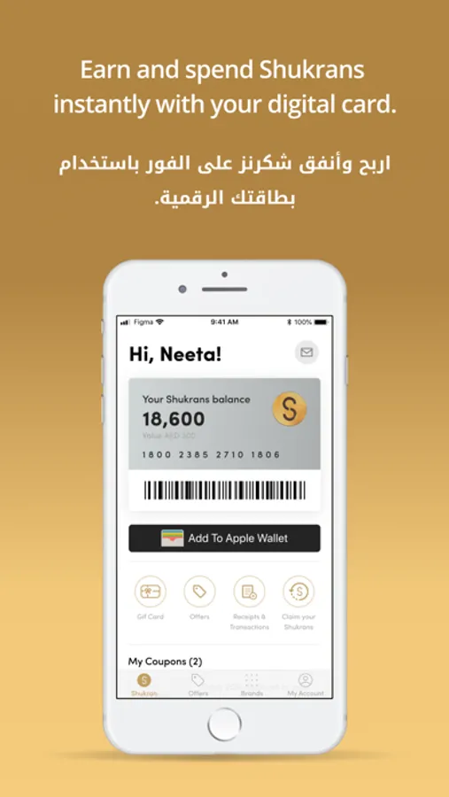 * لمزيد من الراحة Apple Wallet أضف بطاقة شكرًا الخاصة بك إلى