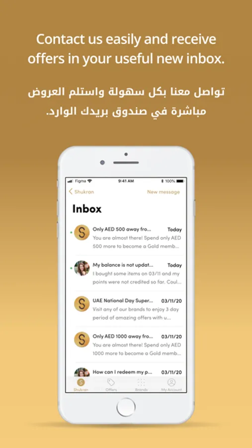 * Use Inbox to instantly message your feedback to Shukran and receive great offers