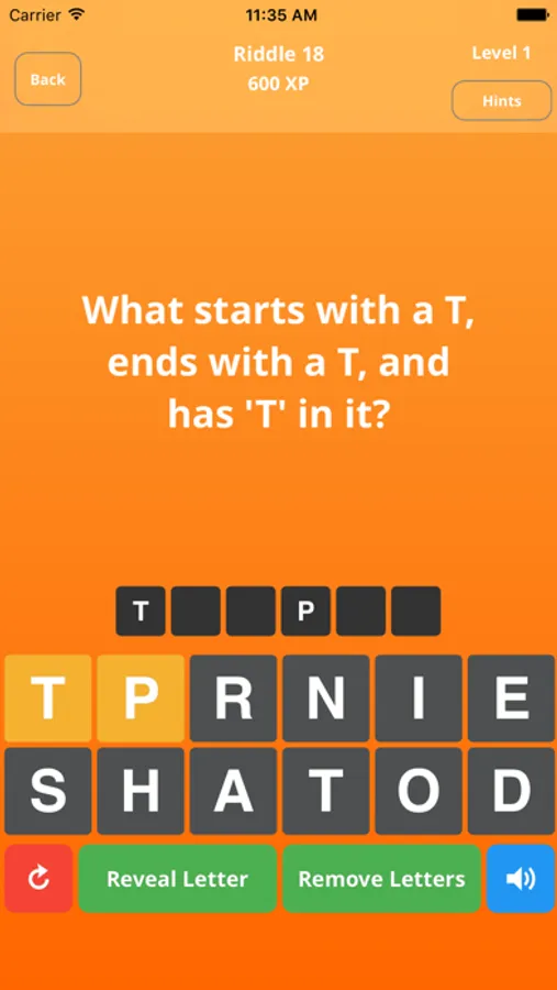 "100 Riddles" game is surprisingly simple and very addictive. Guess the right answer using available mixed letters.