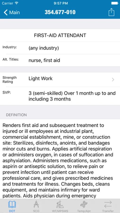 - Every job includes the information from the DOT, SCO, MPSMS, Work Fields, Aptitudes, and Temperaments and is presented in an easily accessible manner (over 65 fields in each code);