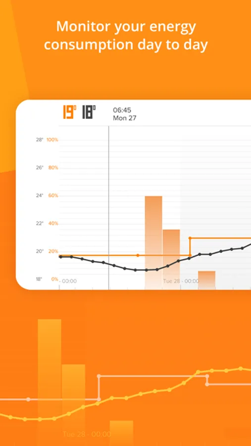 The Thermostat & the Valves set a programme based on your daily routine, so that you heat your home only when needed. Use the graph in the App to track your consumption.