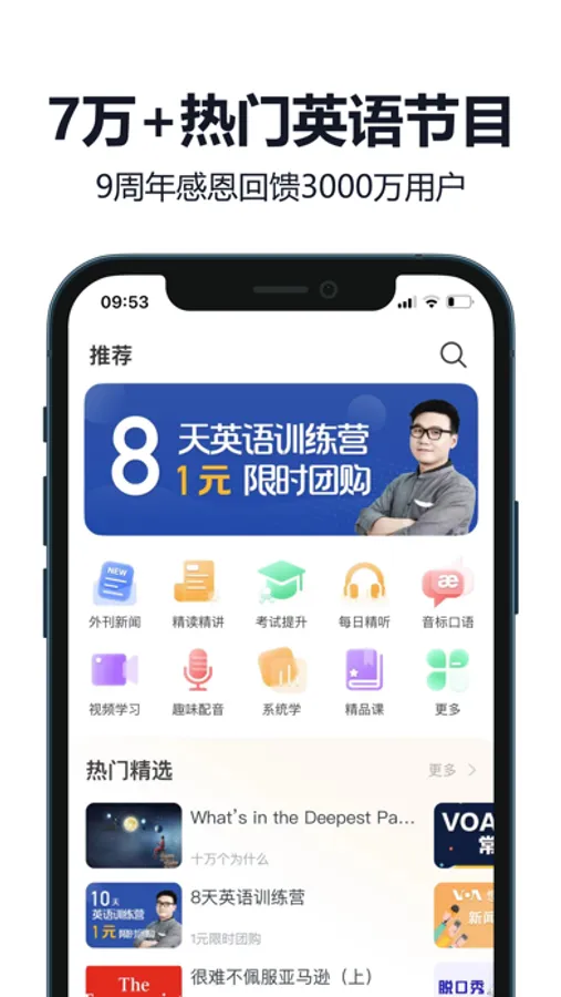 系统学:《搞定国际音标》从根本上改善发音面貌。《生活入门》涵盖60大日常生活场景,让你轻松开口交流。《方法论》教授听说读写译技巧。