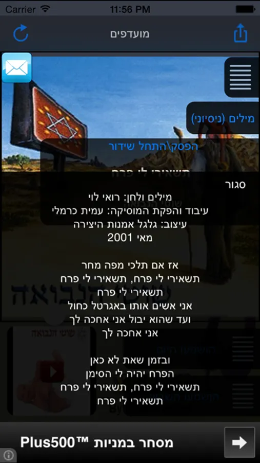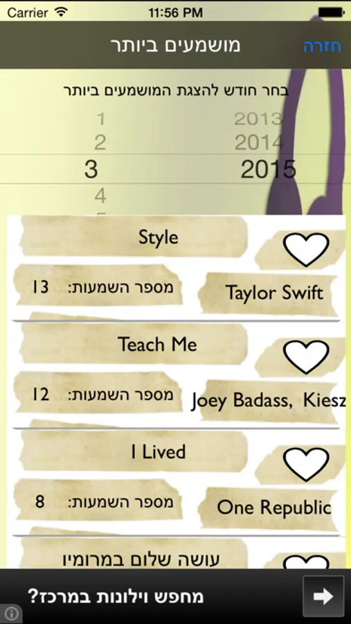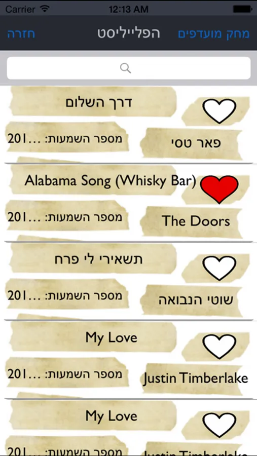 ניתן לסמן שירים אהובים ולגשת אליהם בדרך כפתור ה״מועדפים״ שנמצא למעלה וכך בעצם לזכור את כל השירים המועדפים עליכם מתי שתירצו.