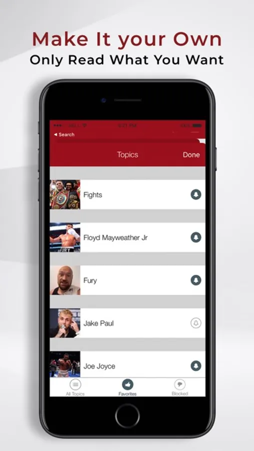 * Subscribe for push notifications for specific boxers/championships, topics and stories