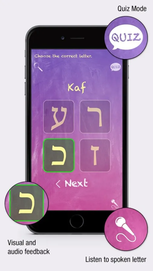 Learn the Hebrew alphabet and vocabulary words with AlefBet OTG (On-The-Go)!
