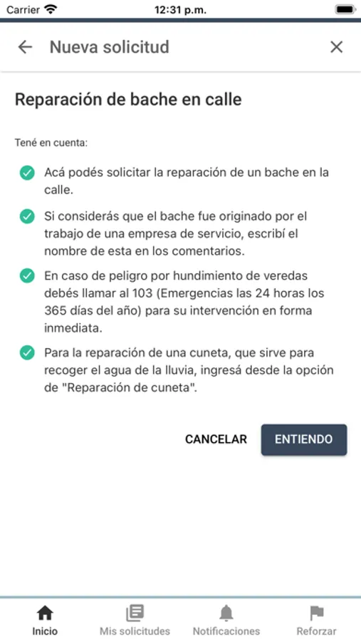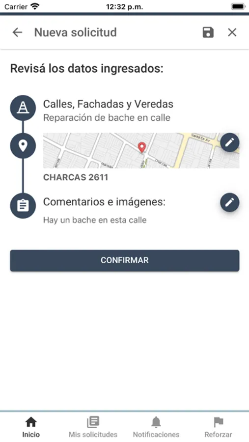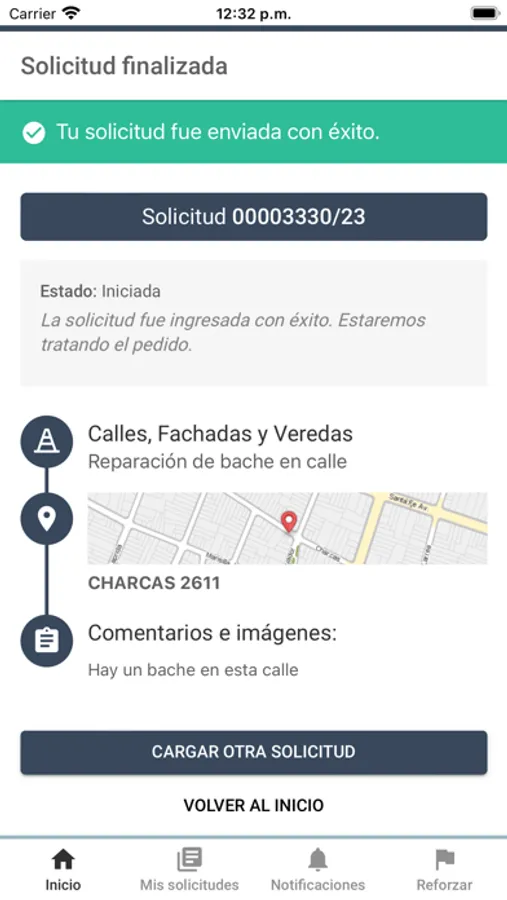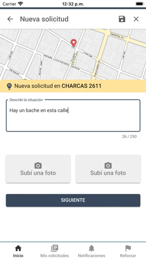 - Cargá una solicitud, agregá una foto y seguí su estado.