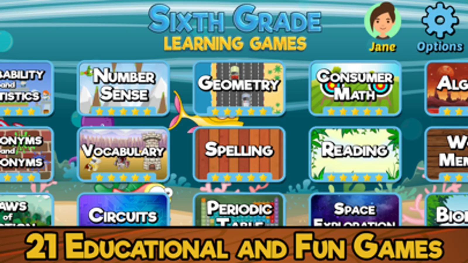 Perfect for 6th grade kids and students who need a fun and entertaining educational game to play. This bundle of games helps your child learn important math, language, algebra, science, and STEM skills used in sixth grade all while having fun! 6th Grade teachers around the world use this app with their students to help reinforce math, language, and science subjects.