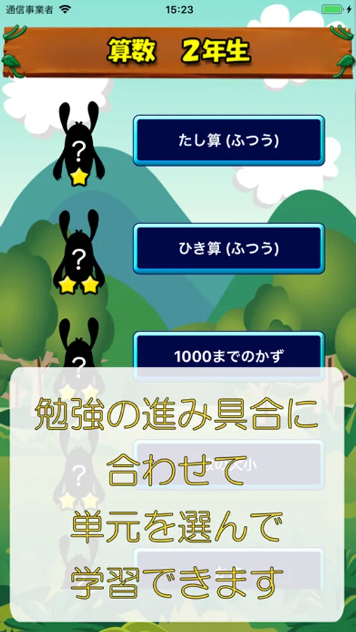 かけ算や時刻・時間など、2年生で学習する単元をすべてカバー。複数のアプリをインストールする必要はないオールインワンのアプリです。