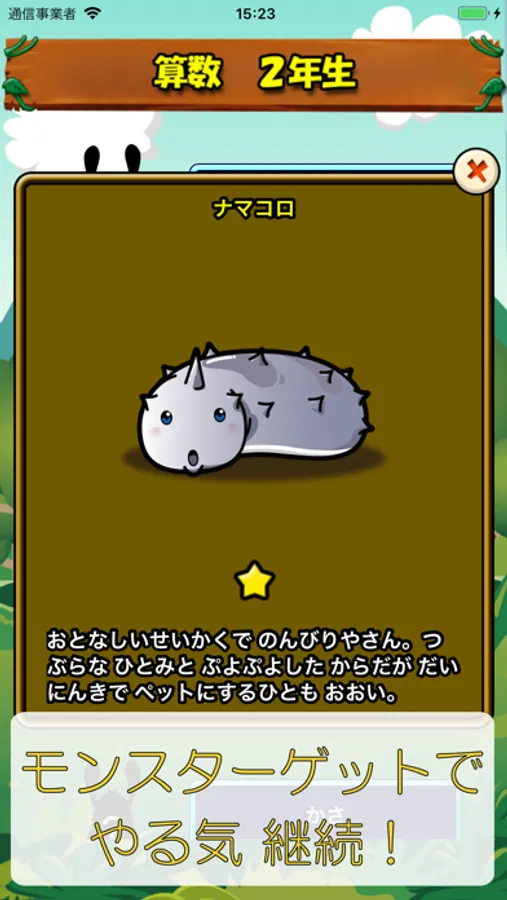 小学校2年生の算数アプリの決定版!学習の進み具合に合わせて単元を選択して、効率的に復習できます。4択のクイズ形式という使いやすさ、勉強のご褒美にモンスターを集めていく楽しさで、子供が継続的に勉強します。(iPad、iPhoneの両方に対応)