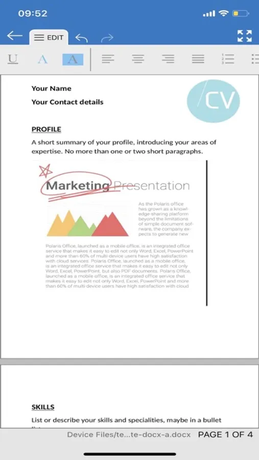 Office Docs is a fully featured office processor app, which lets you create and edit Word 97-2010 (.doc & .docx), Excel and PowerPoint format files on your iPhone/iPad. It supports advanced character and paragraph formatting, including tables, images, auto-correction, auto-completion, copy/paste and undo/redo. It also has support for tracked changes.