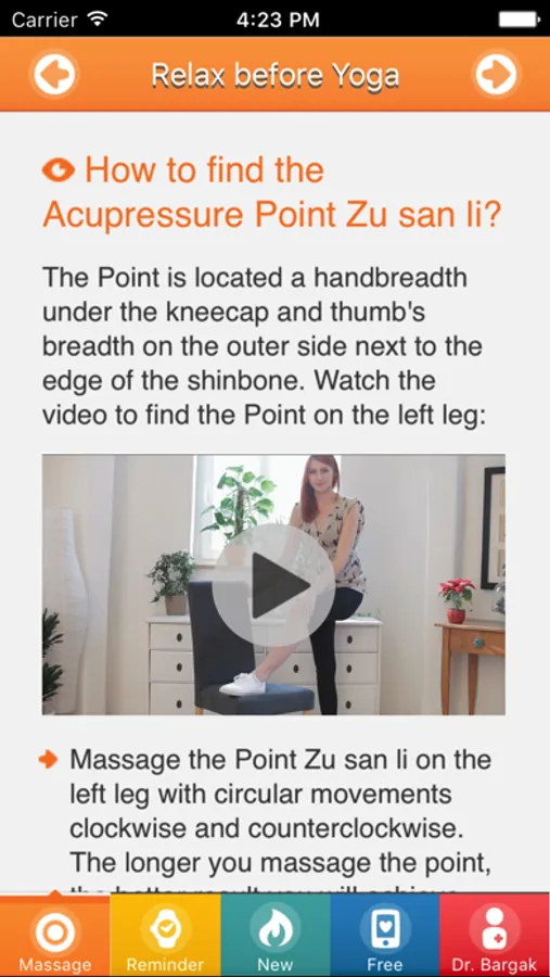 √ Easily find the right Massage Points with simple Full HD Videoclips and Photos (more Points and Videos in the PREMIUM Version)