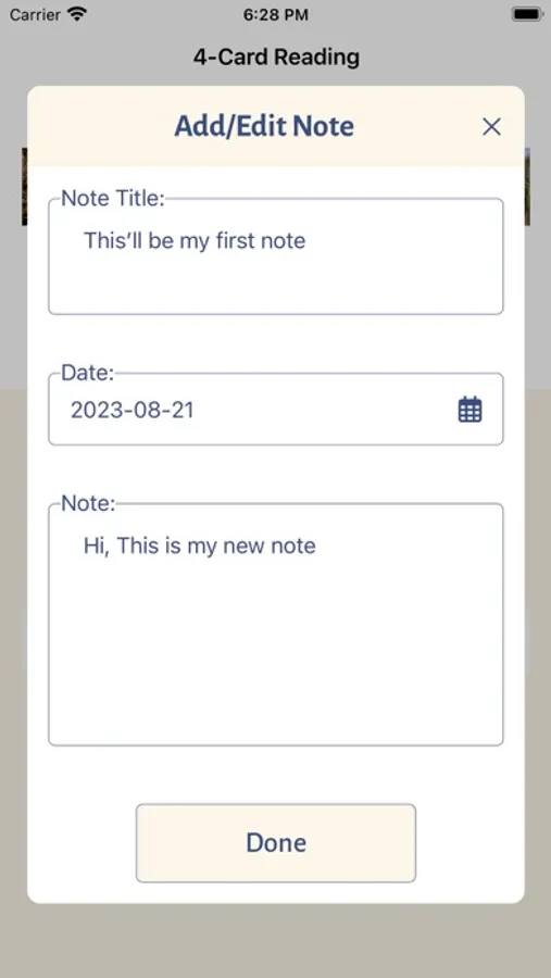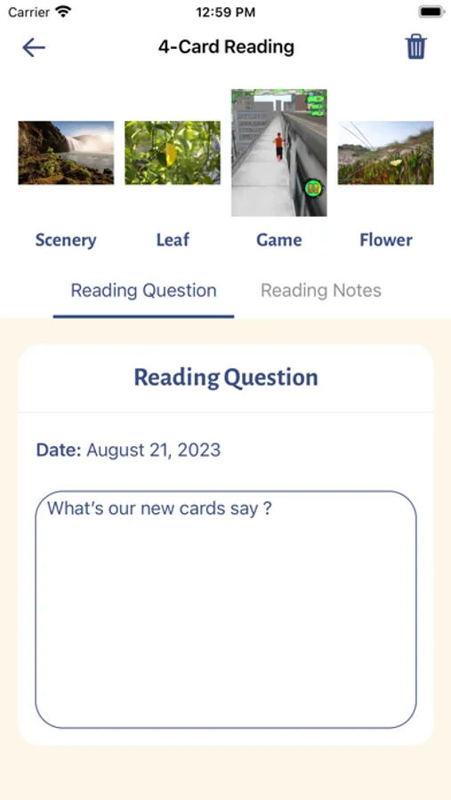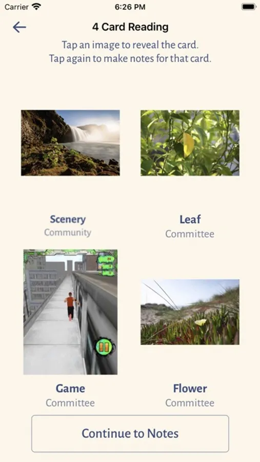 In the 4-Card Reading, enter a meaningful question, then tap and the app will choose four of your cards at random and present them face down. You will tap on the first card to turn it over. Let the card speak to your question, using the SoulCollage® process where we allow the image to speak in its own voice to give you guidance through your own intuition and imagination. You can make notes on each card as you work through the Reading. After looking at all four cards, you continue to make notes on the Reading as a whole. When complete, you can store the reading and its question, date, and notes for later search and access. “SoulCollage” is a registered trademark licensed to Hanford Mead Publishers, Inc. Visit the SoulCollage® website for more information about the SoulCollage® card-making and reading process.