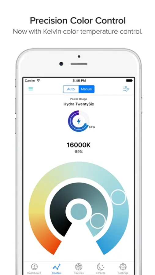 - Adjust the light to your liking using color sliders or Kelvin color temperature control.