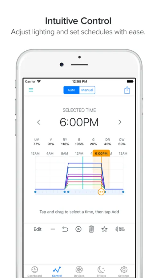 - Setup a timer with a touch of your finger for each of your light’s colors.