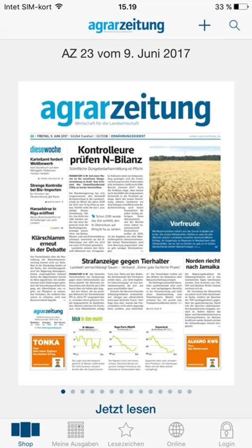 Die digitalen Ausgaben sind für Print-Abonnenten der 'agrarzeitung' kostenlos zu lesen. Für alle Leser gilt: Bereits geladene Ausgaben sind über die Archivfunktion jederzeit abrufbar. Im Shop stehen jeweils die Ausgaben der letzten drei Monate zum Download zur Verfügung. Unter „Mein Archiv"