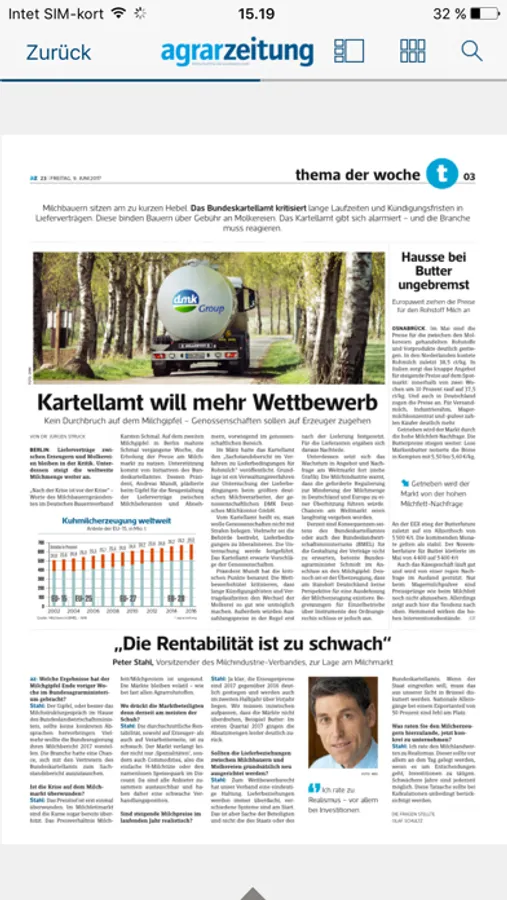 Die digitale Ausgabe der 'agrarzeitung' steht Ihnen jeden Donnerstag ab 19.00 Uhr zum Download zur Verfügung. Sie bietet Ihnen den kompletten Inhalt der Druckausgabe, teilweise ergänzt um weitere Features.