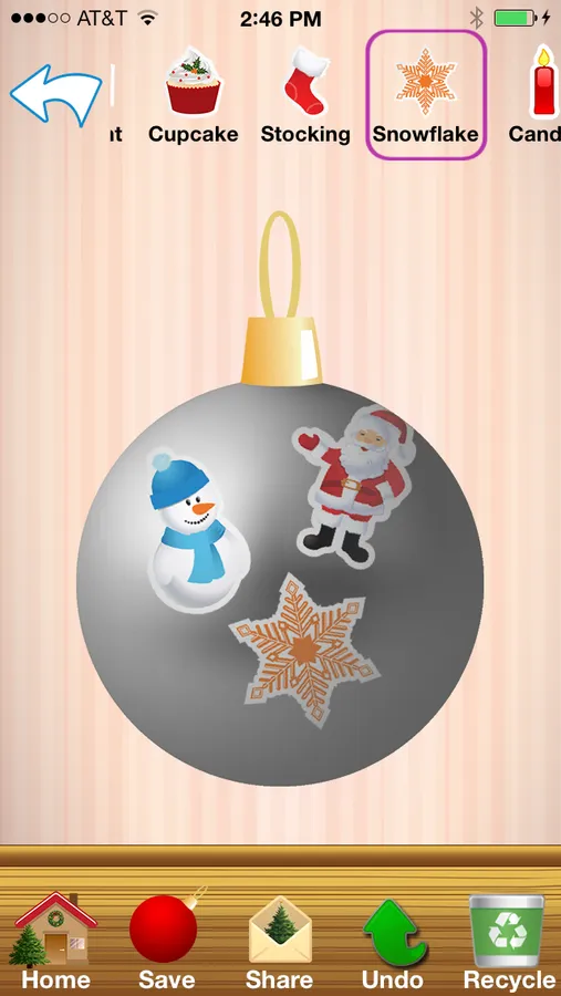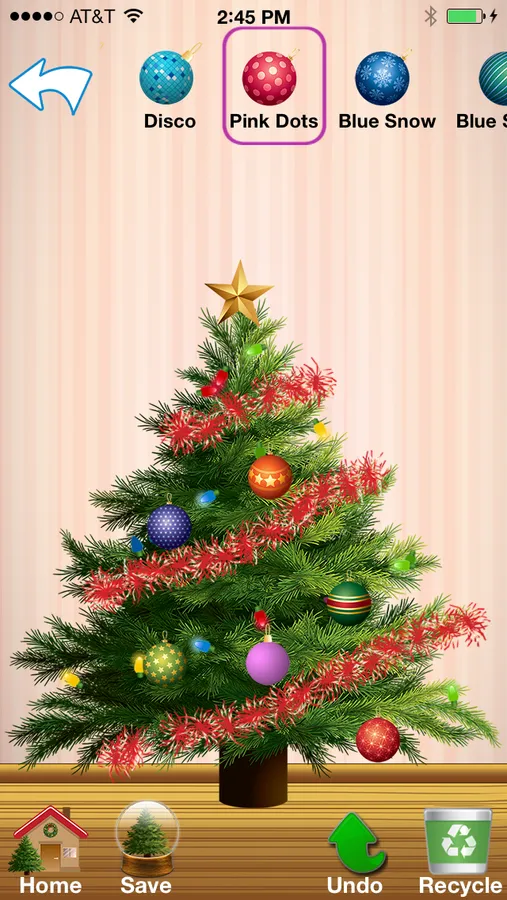 Share your tree or custom ornaments via email, Facebook, or save to your photos album. Or display your tree with Christmas carols playing in the background, and a visit from Santa that leaves presents you can tap to open and find out what toys he left!