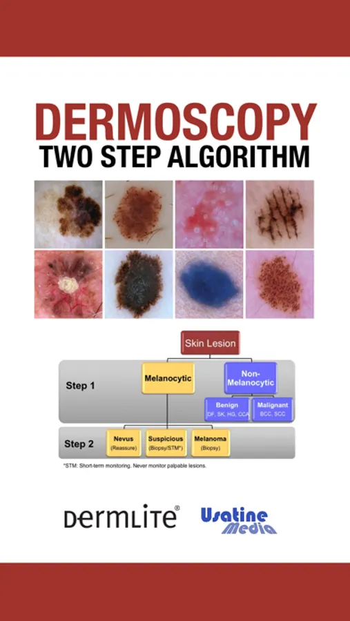 Disclaimer: While this app may help you in rendering a correct diagnosis, it is not intended to entirely replace the findings on patient history and physical examination including examination of the lesion with side lighting and touch. The final diagnosis rests on properly assimilating the information gained from the patient history, thorough naked eye physical examination, and meticulous dermoscopic inspection of the lesion.