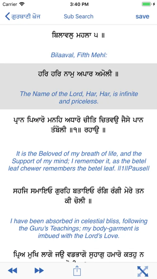 Gurbani Khoj is an application that will provide you with translations and transliterations of the Sikh holy scriptures. In addition to that Gurbani Khoj has features that include: