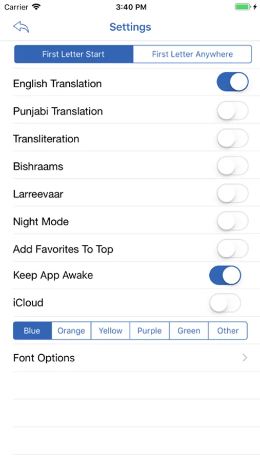 - Font Options