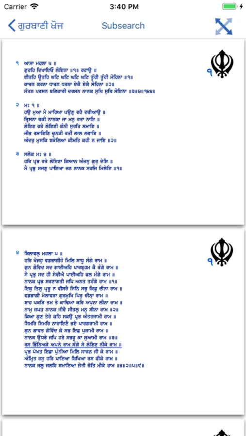 - Sub-Searching (Searching for a shabad while still viewing the current one)
