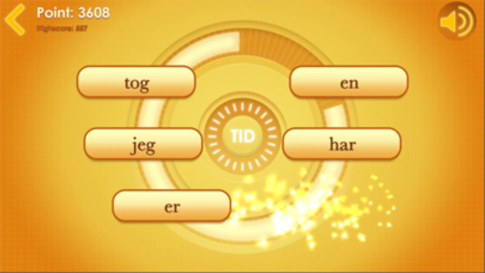 360 ord er opdelt i 6 niveauer. Man vælger selv, om man vil træne ordene stille og roligt i træningsdelen eller spille på tid i spilledelen.
